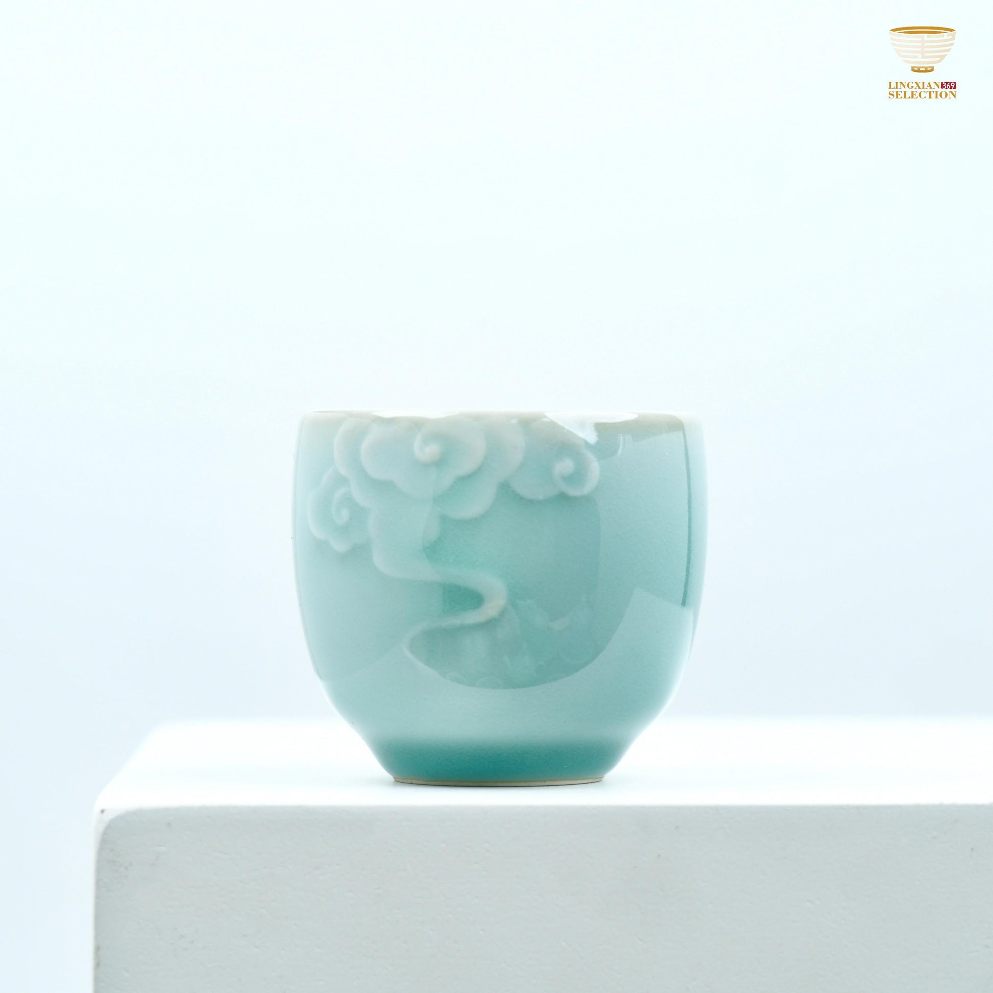 【Celadon Cloud Tea Set From Master Lei Huixian】 – Teapot with 4 Cups | Handcrafted High-fired Ceramic Gift Set | Chinese Kung Fu Teaware Collection