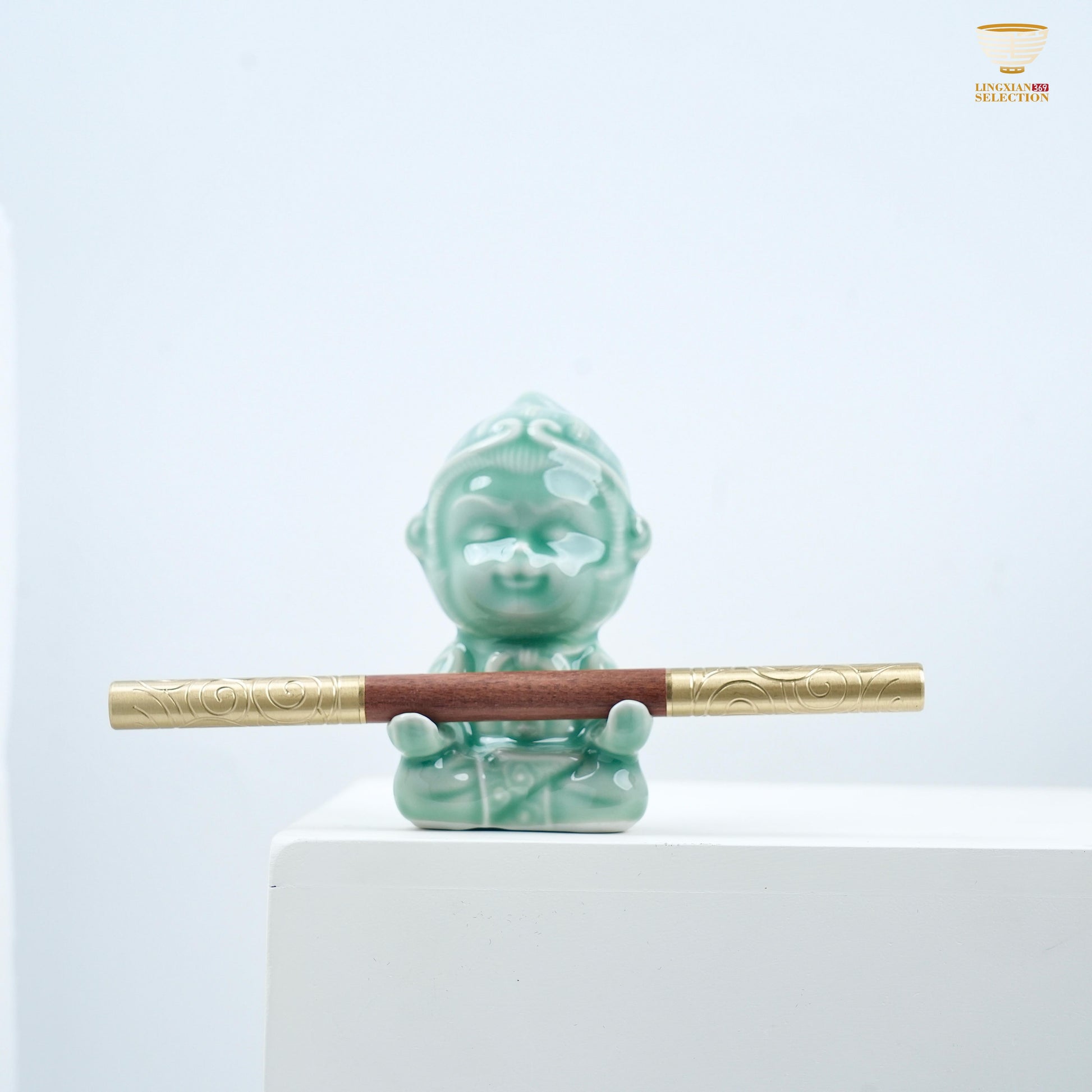 Celadon Monkey King Figurine Tea Knife From Lei Huixian|Hidden Tea Knife in Golden Staff|Kung Fu Tea Accessory & Collectible