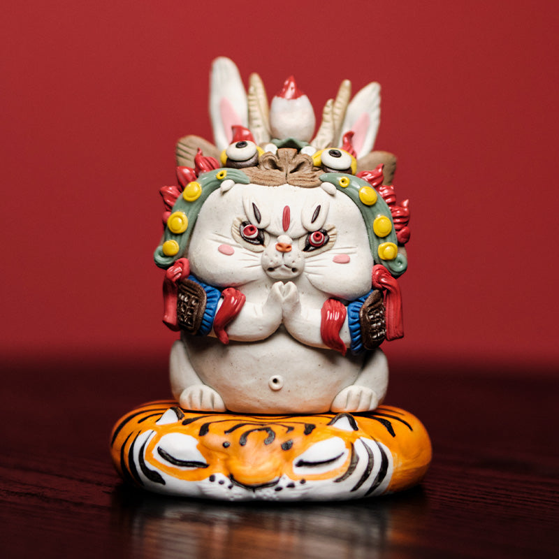 Grateful for his lifesaving help, they built temples in his honor and began worshiping him as the Rabbit Deity. Since then, every Mid-Autumn Festival, the Rabbit Lord secretly returns to the human world in disguise—wearing a qilin helmet to hide his celestial origins.