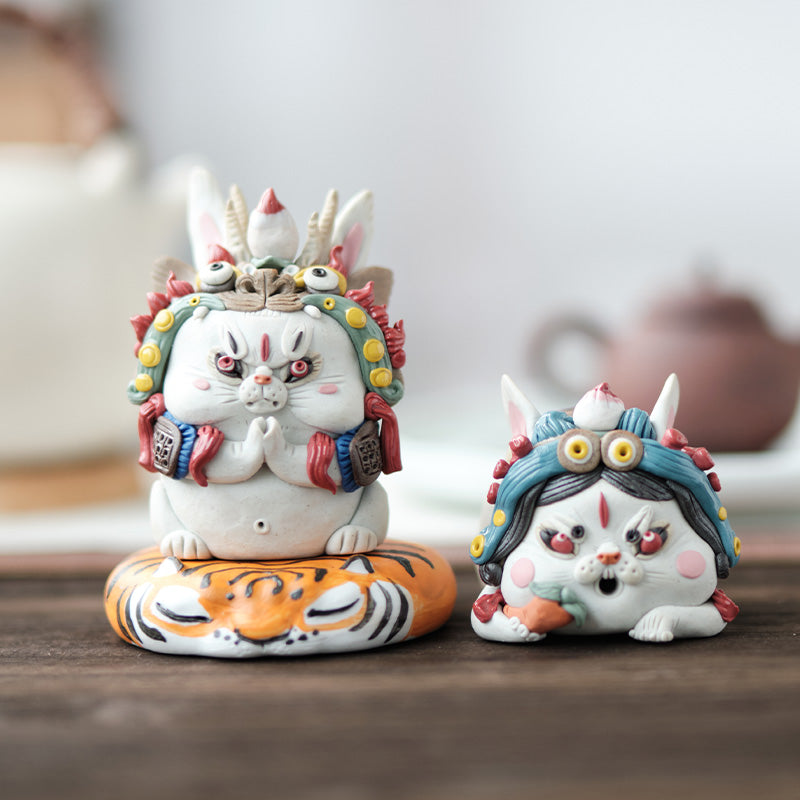 Chinese Intangible Cultural Heritage – Moon Palace Fairy “Rabbit Duner” Figurine | Rabbit Deity Tea Pet & Incense Holder | Traditional Chinese Tea Culture Gift