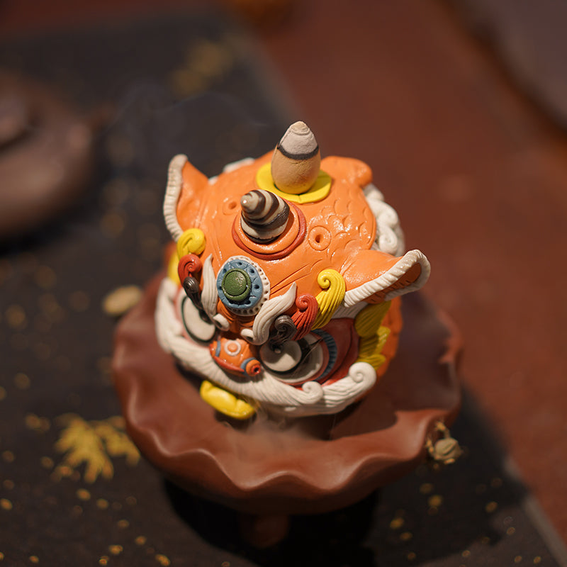 Chinese Lion Dance-Inspired Tea Pet – Backflow Incense Burner | Jingdezhen Porcelain | Traditional Chinese Gift