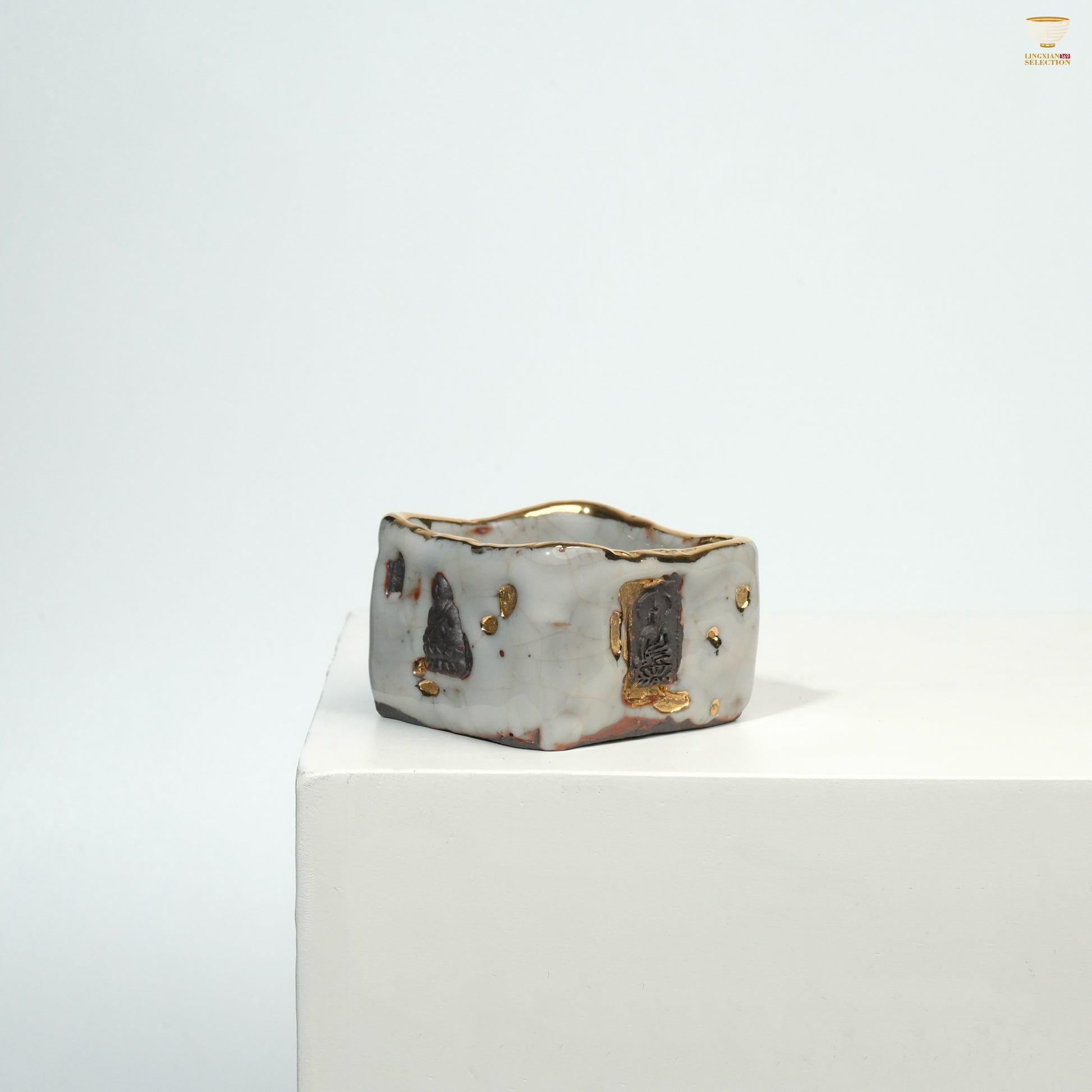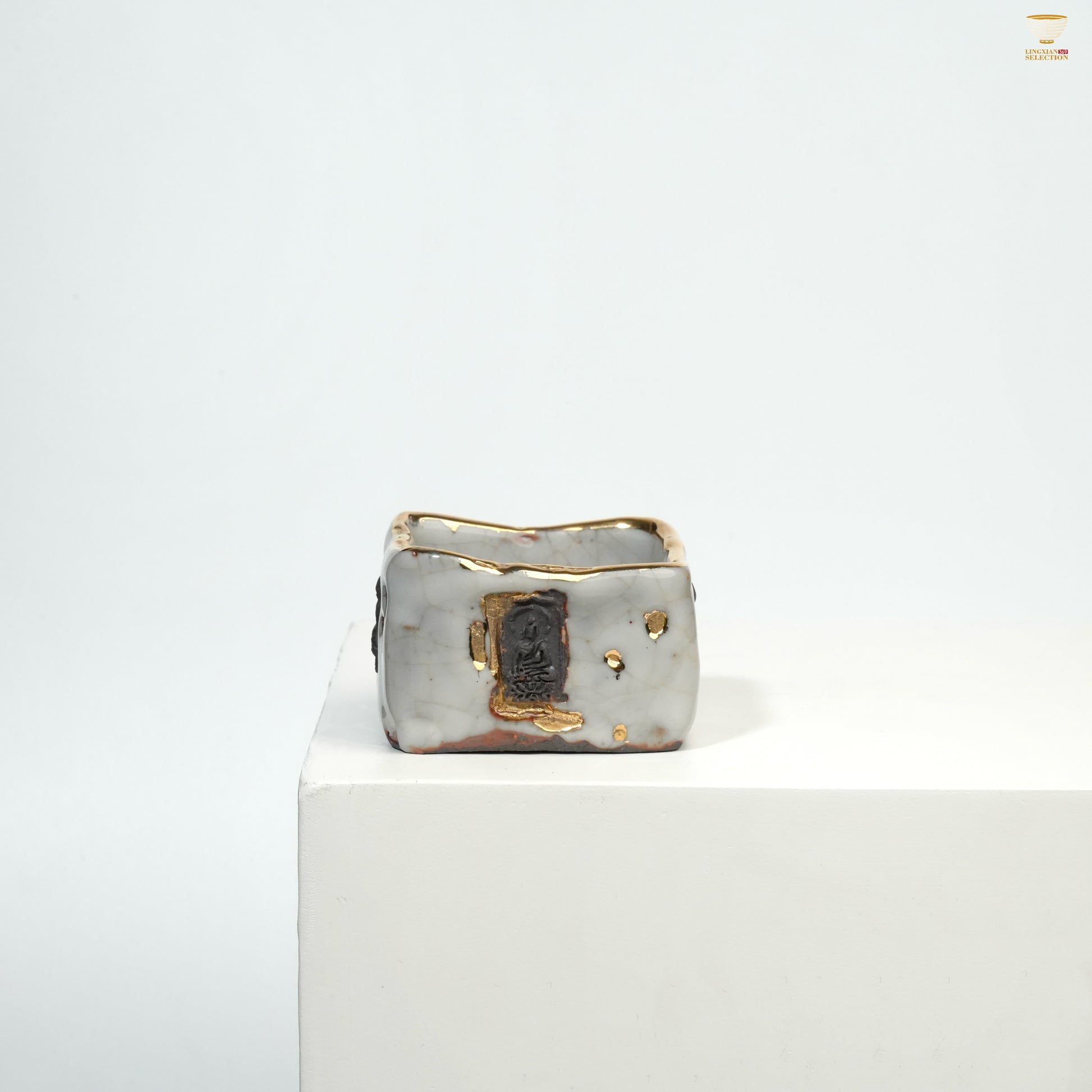 Gao Yue · Shino Ware Dunhuang Buddha Teacup | Handmade Wood-Fired Ceramic Cup | Buddha Relief · Kintsugi Art · Collectible Zen Teaware