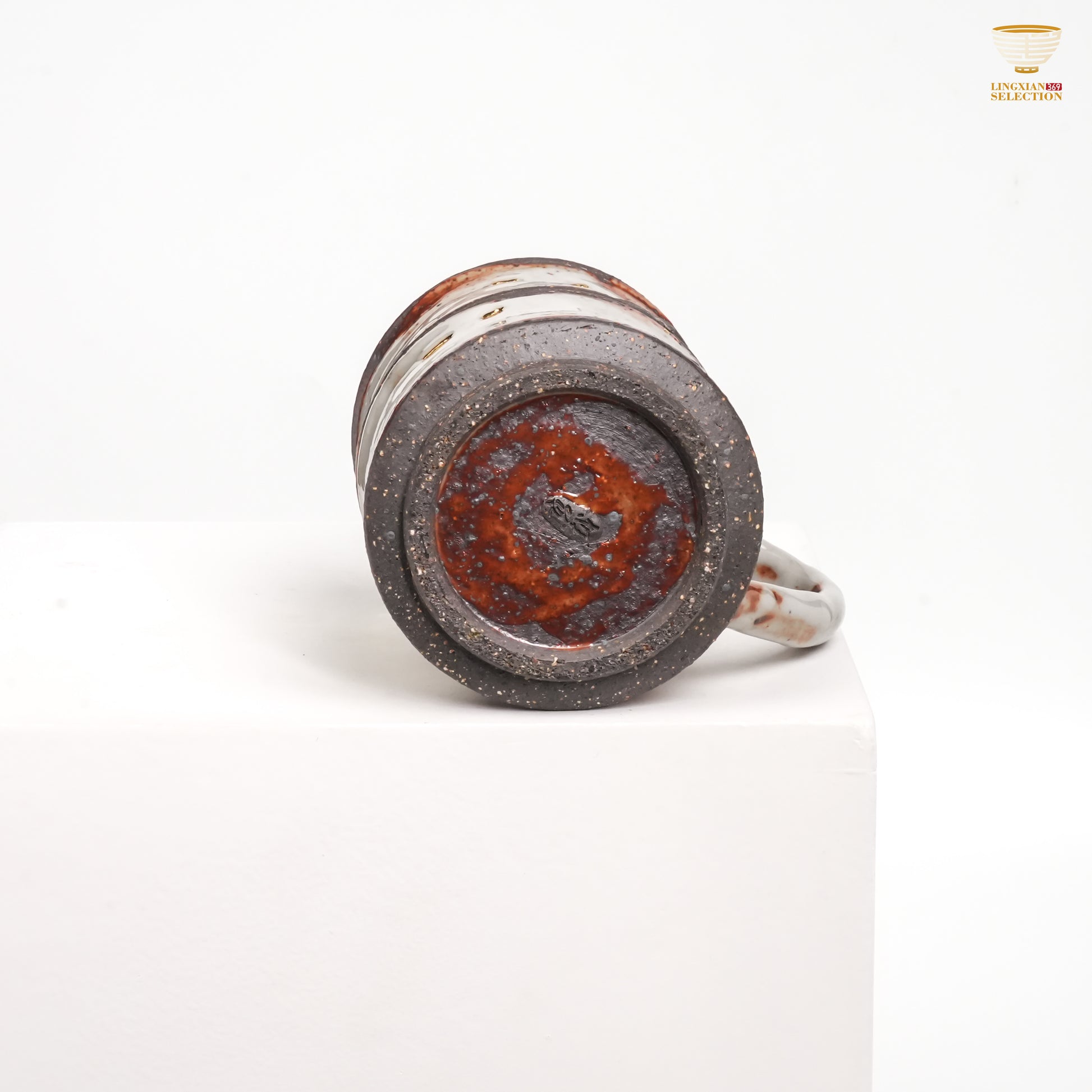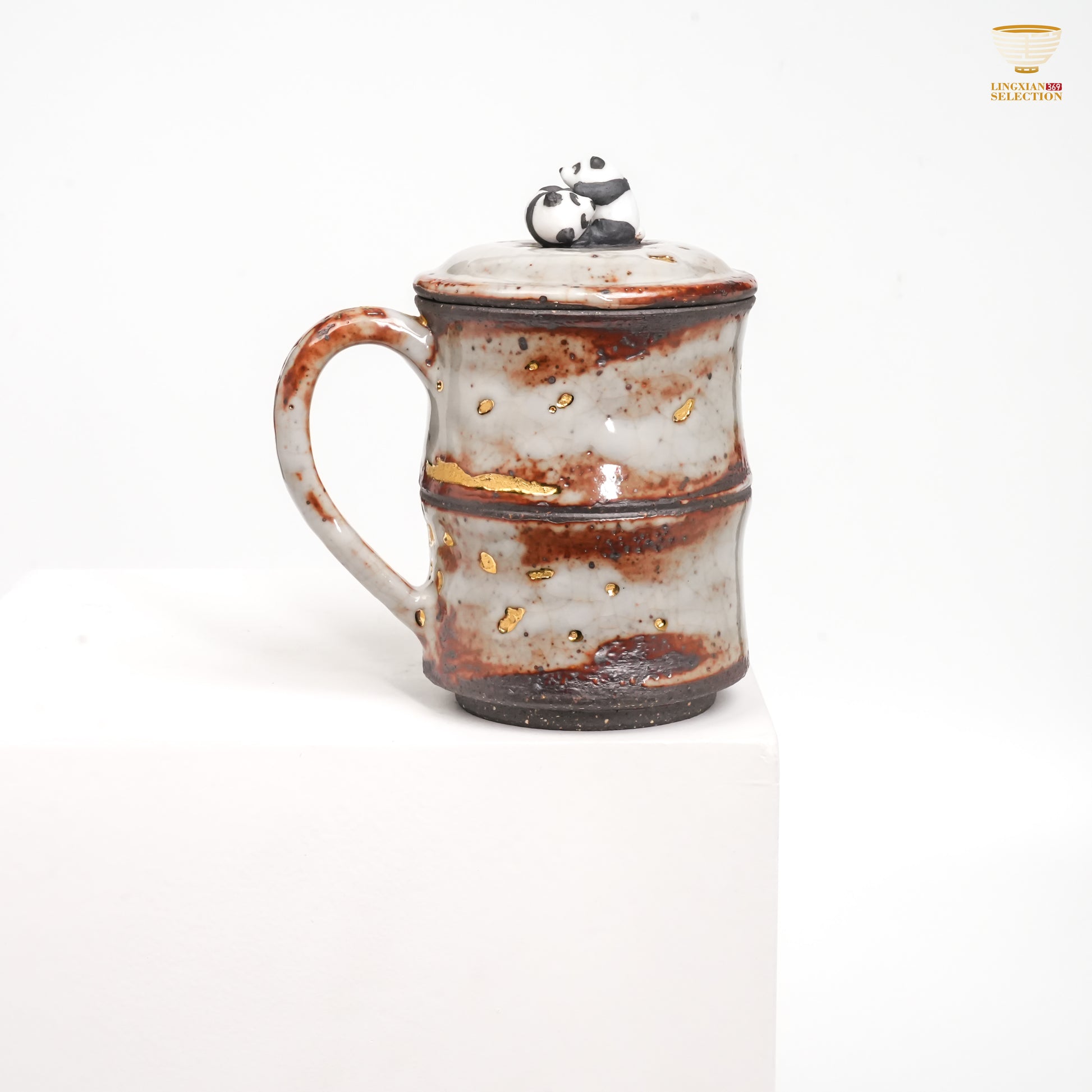 Gao Yue · Shino Ware Panda Bamboo-Form Mug | Handmade Ceramic with Crackle Glaze & Gold Accents | Collectible Oriental Teaware Gift