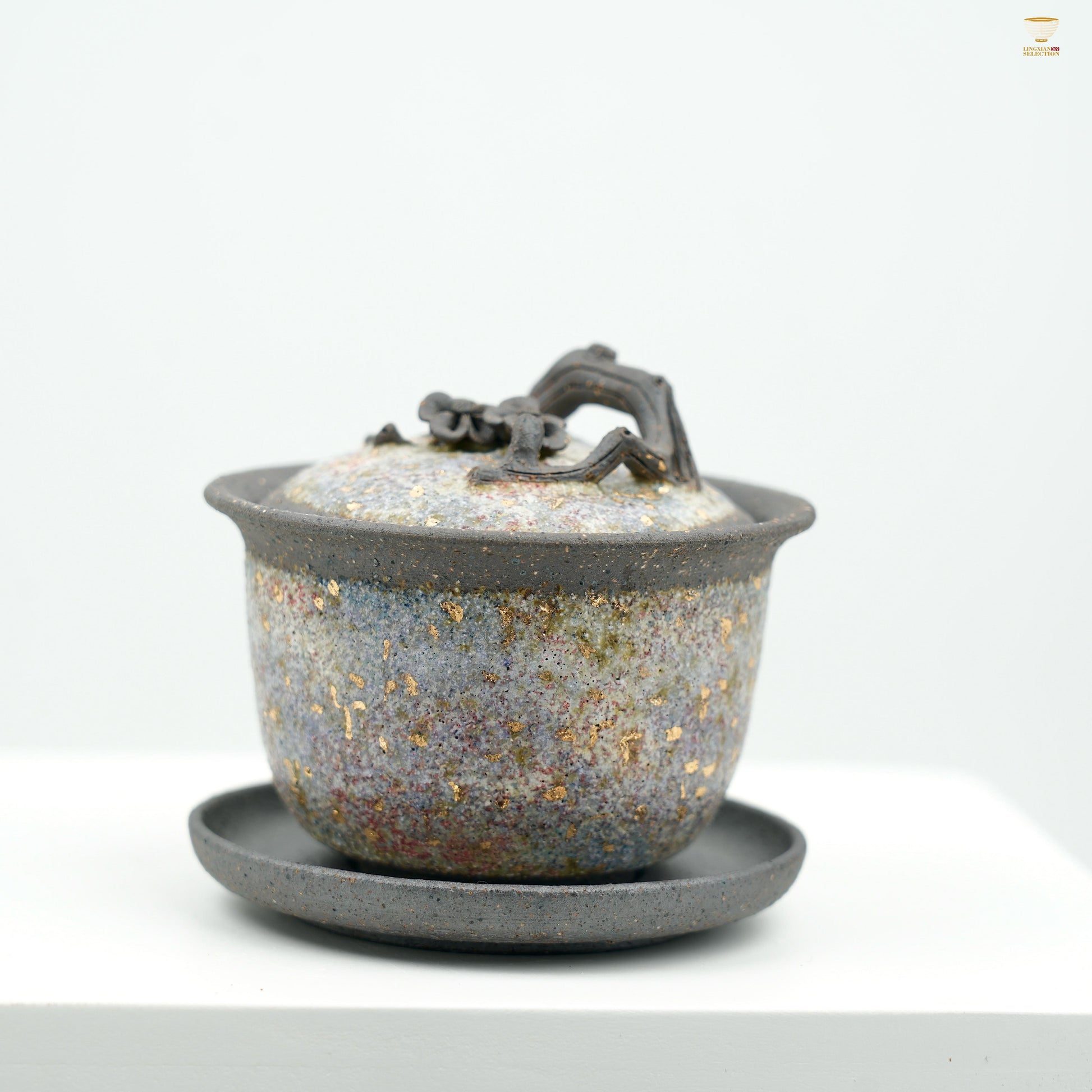 Gaoyue Aged Rock-Mineral Glaze Plum Blossom Gaiwan | Handcrafted Ceramic Teaware | Zen-Inspired Three-Piece Tea Bowl Set
