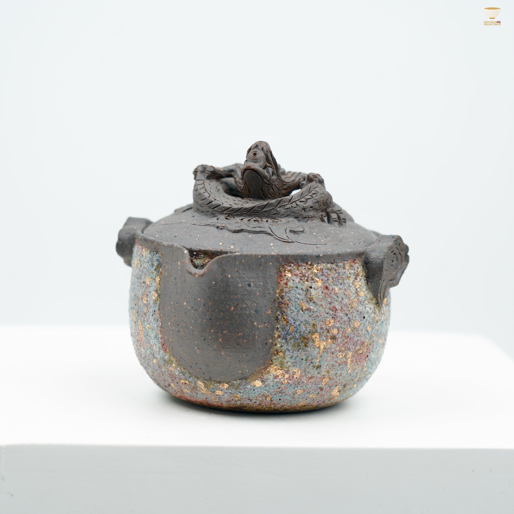 Gaoyue Aged Rock-Mineral “Dragon Treasure” Quick pot | Handcrafted Ceramic Pot with Dragon Lid Design | Oriental Wabi-Sabi Aesthetic Collectible