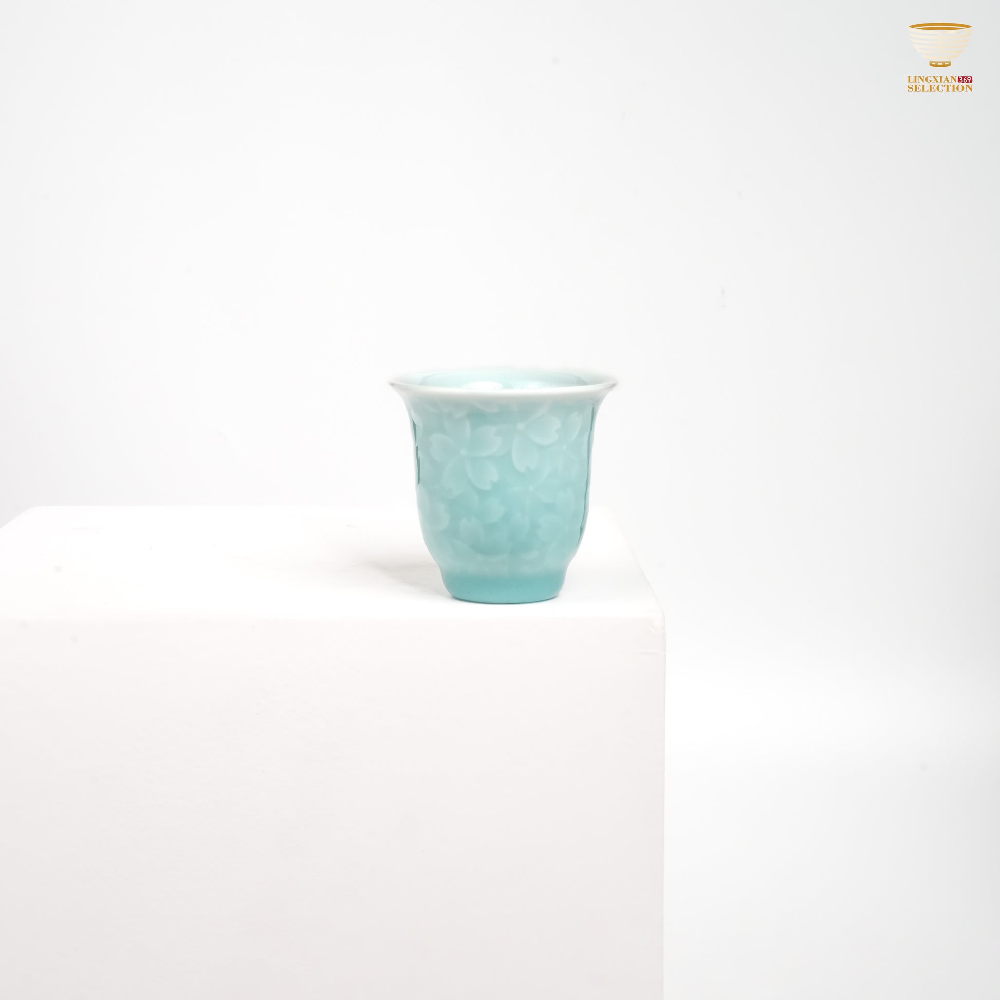 Jin Hongyang's Masterpiece: Celadon Pink Blue Bloom Teacup