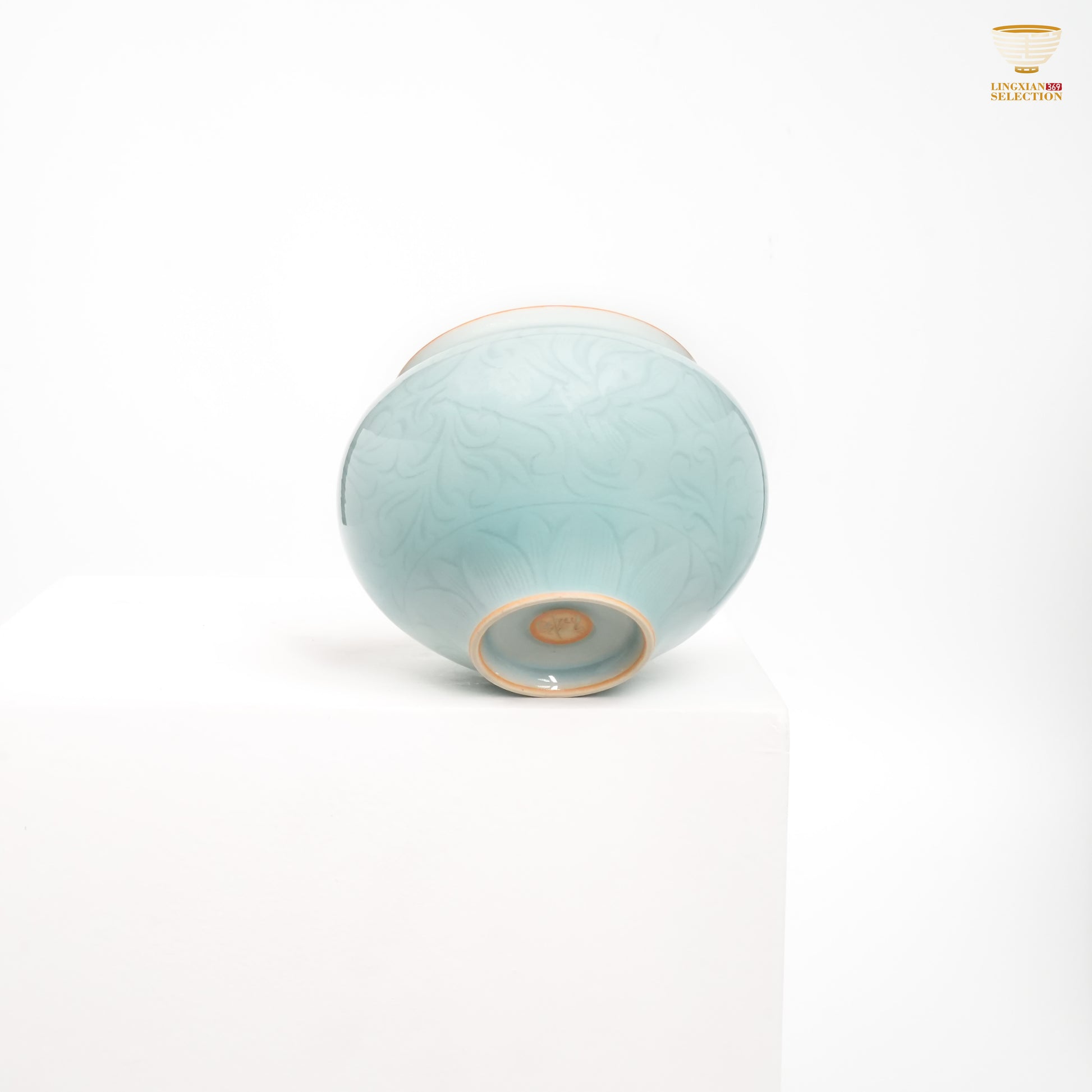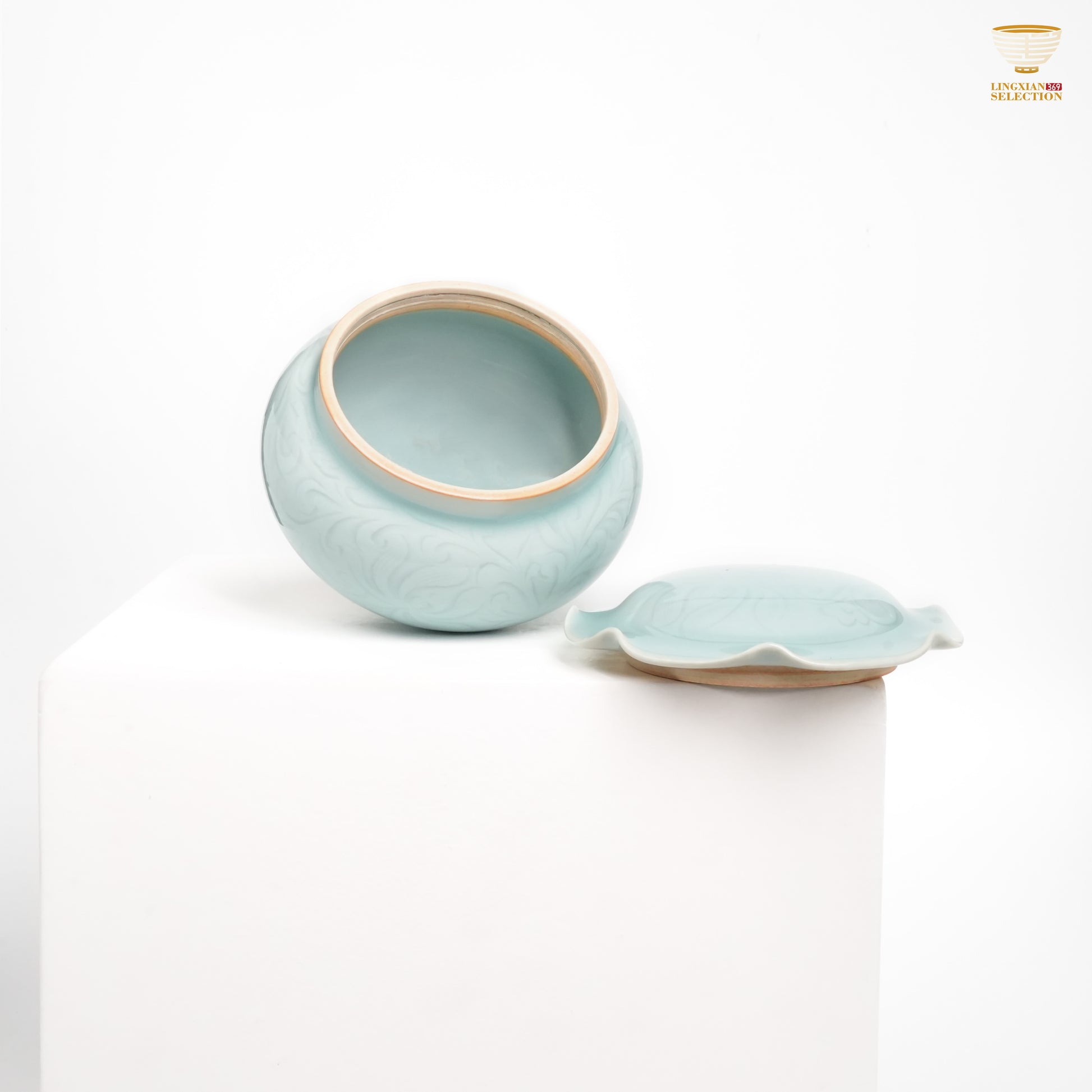 Jin Hongyang · Celadon Pink Blue Lotus Carved Tea Jar|Hand-Carved Elegance · High-Fire Porcelain · Refined Lotus Motif · Ideal for Sealed Tea Storage