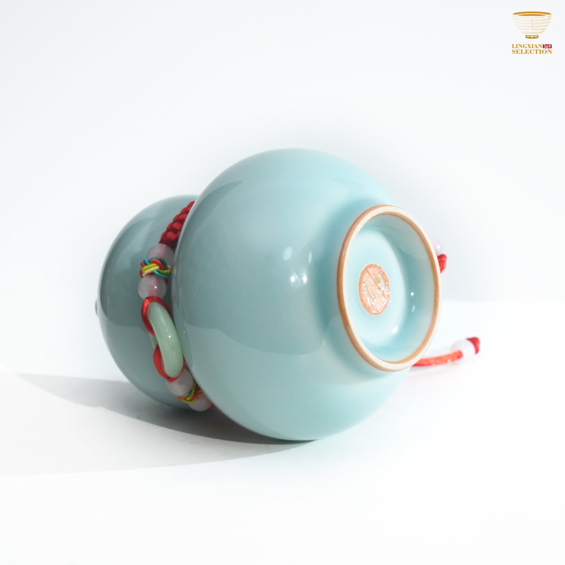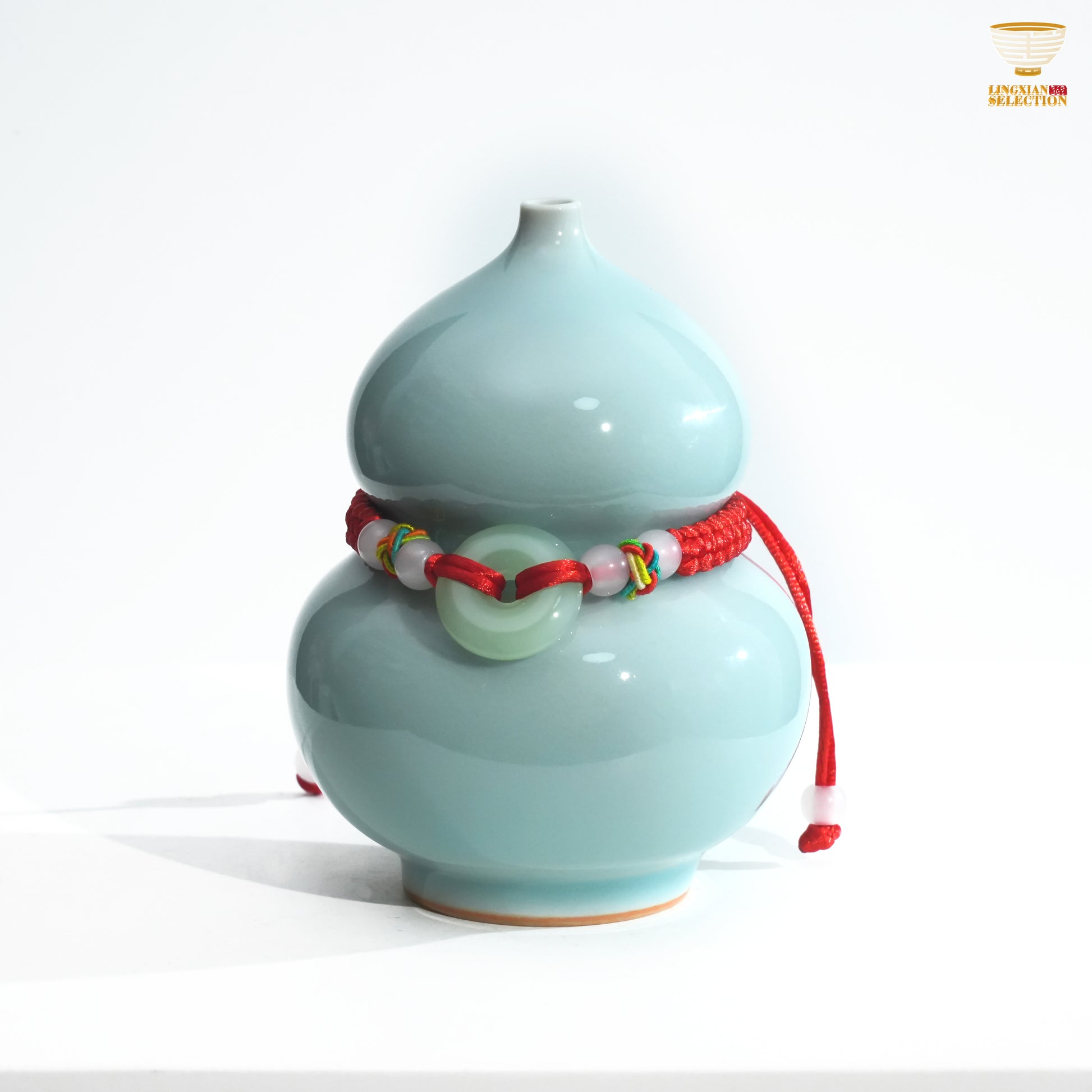 Jin Hongyang · Celadon Pink Blue Peace Gourd|Glossy Official Glaze · Symbol of Blessings · Handmade Kiln Art · Auspicious Giftware