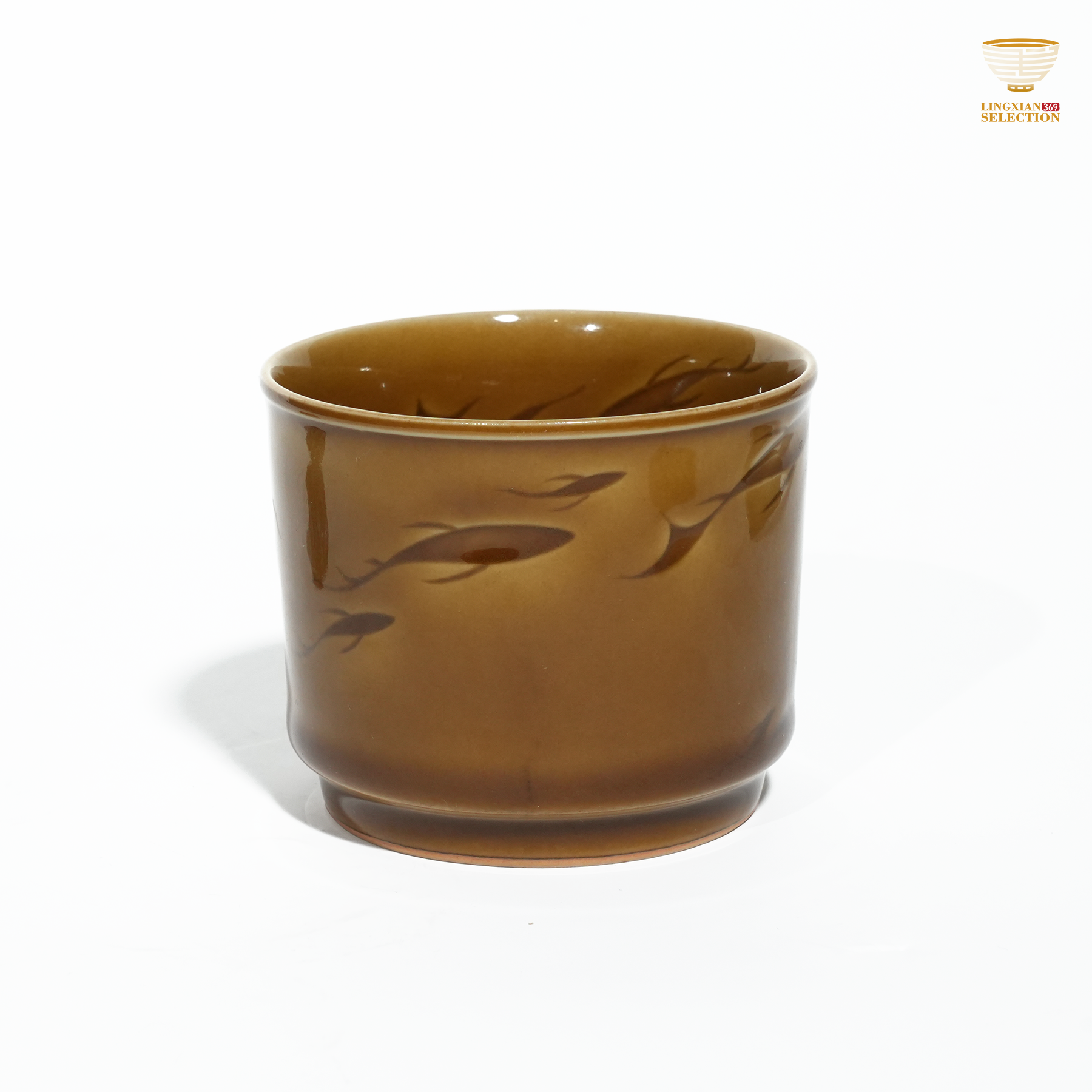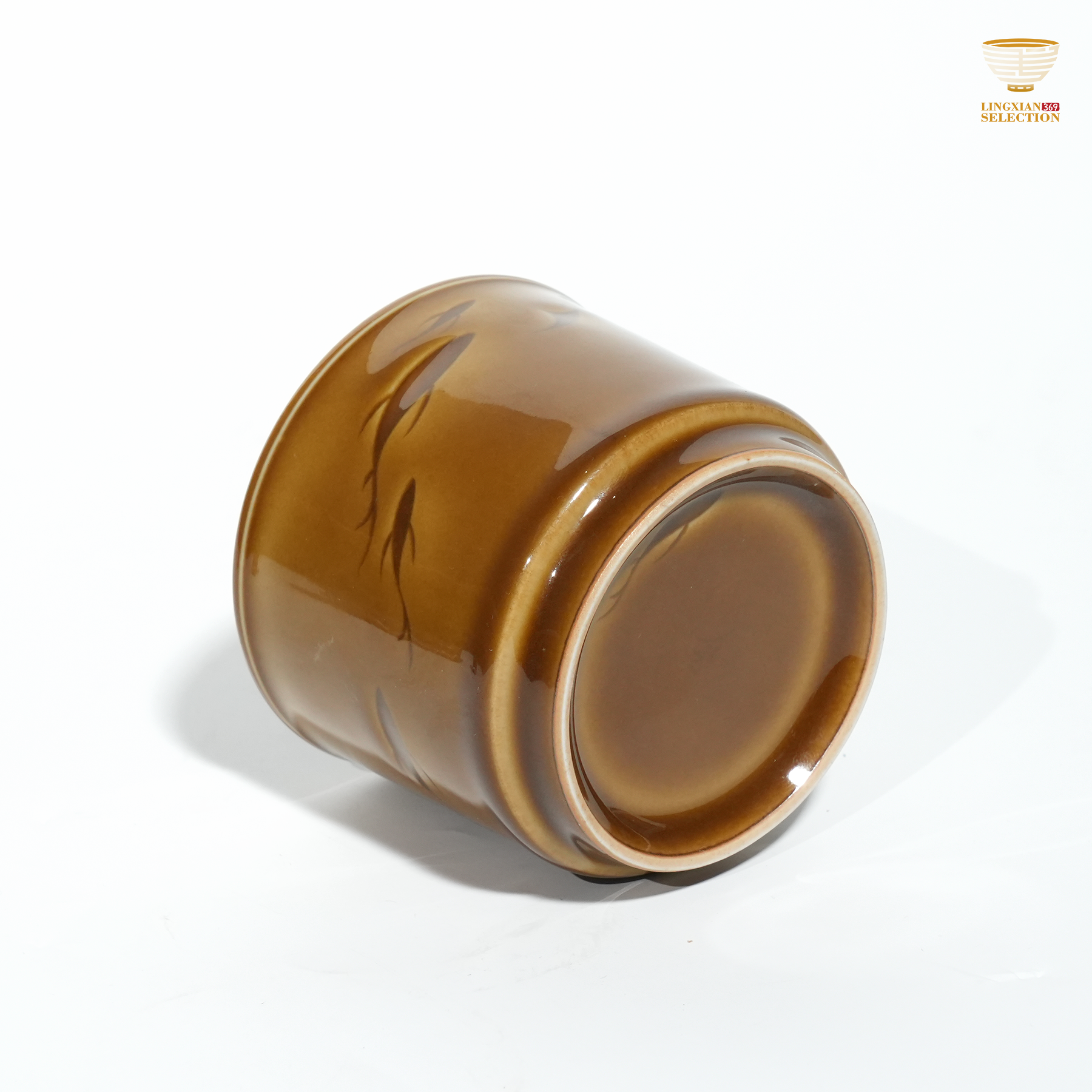Liao Xinliang "Autumn Waters" Big Fish & Begonia Horizon Teacup | Celadon Art Ceramic Cup | Handmade · Minimalist & Elegant Drinking Cup