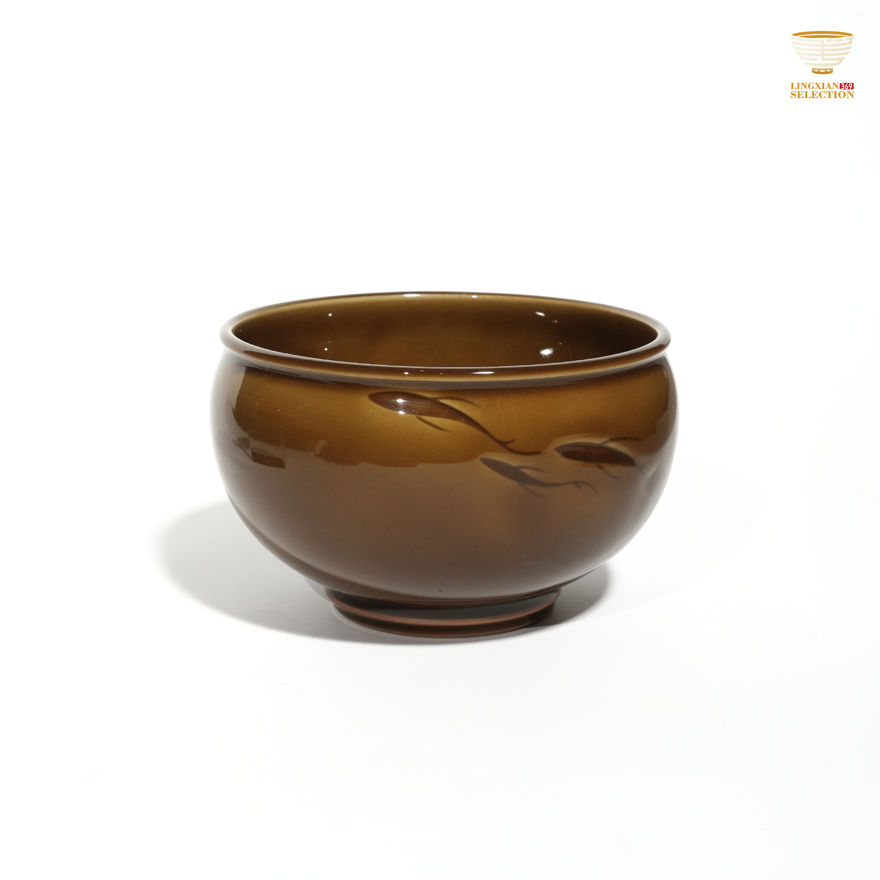 Liao Xinliang "Autumn Waters" Big Fish & Begonia Teacup | Celadon Art Ceramic Cup | Handmade · Minimalist & Elegant Drinking Cup