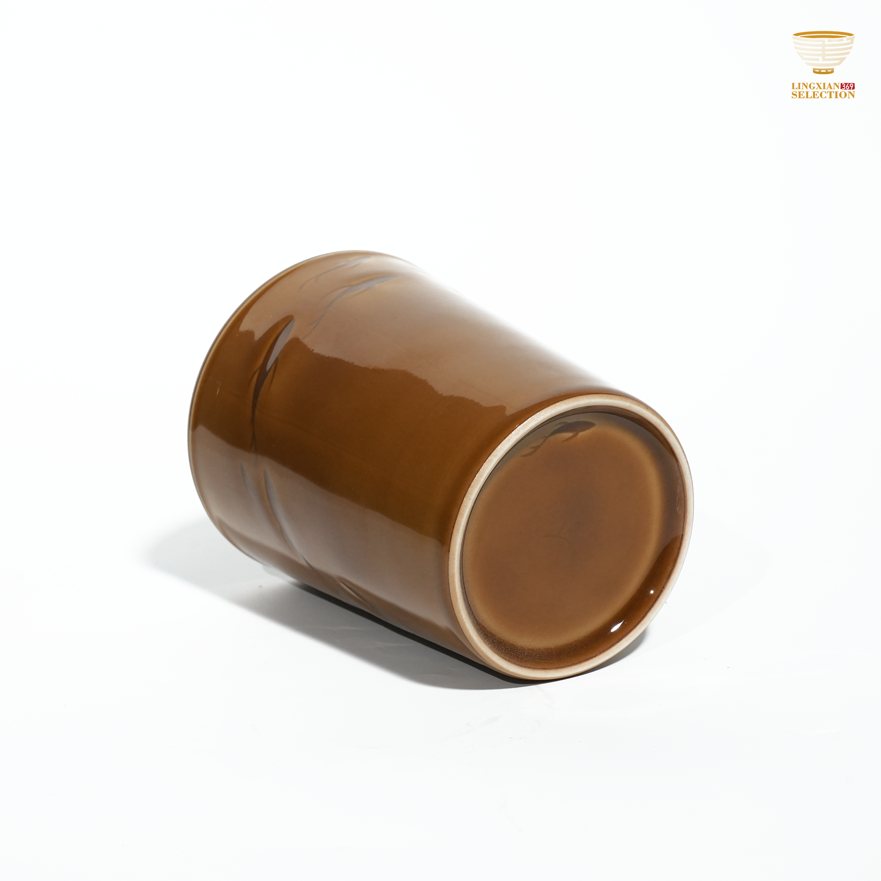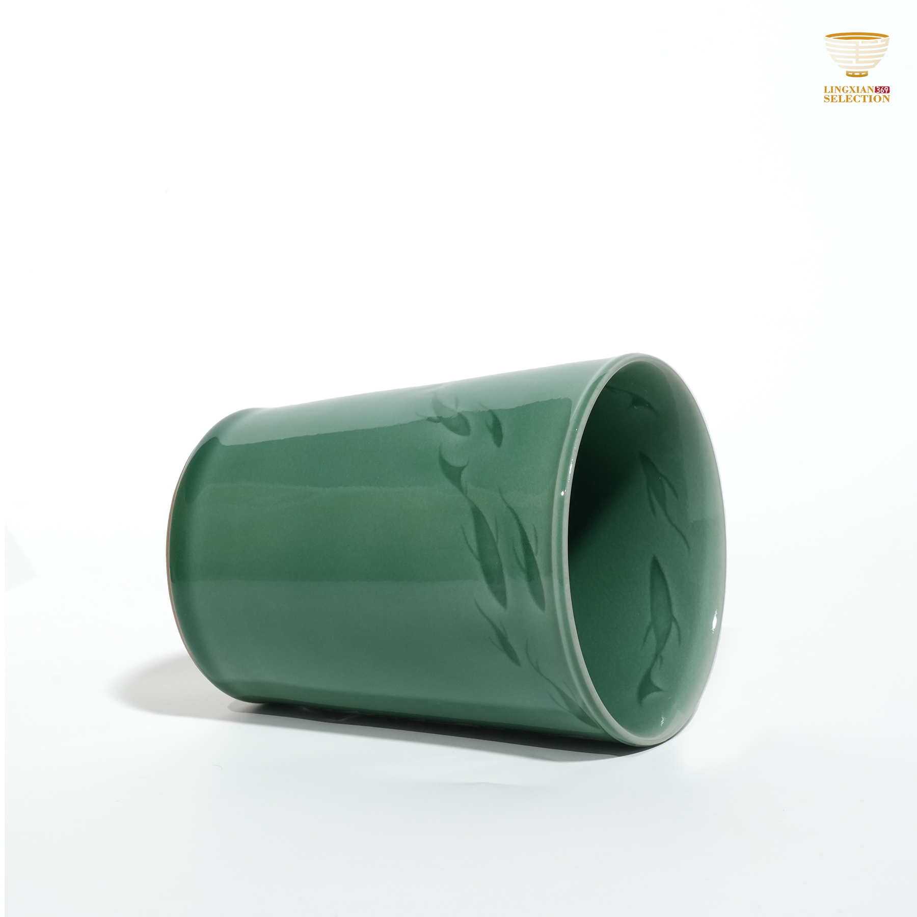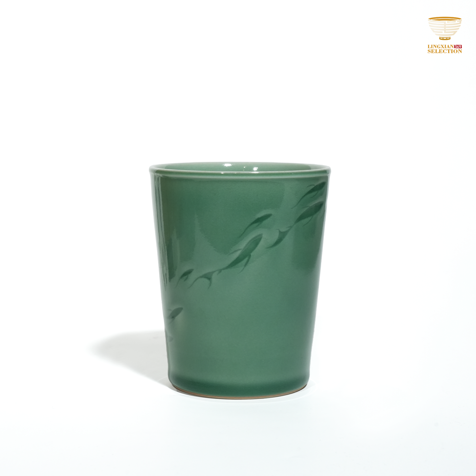 Liao Xinliang Big Fish & Begonia Plum-Green and Autumn Water Cola Cup | Celadon Art Ceramic Cup | Handmade · Symbol of Abundance & Prosperity