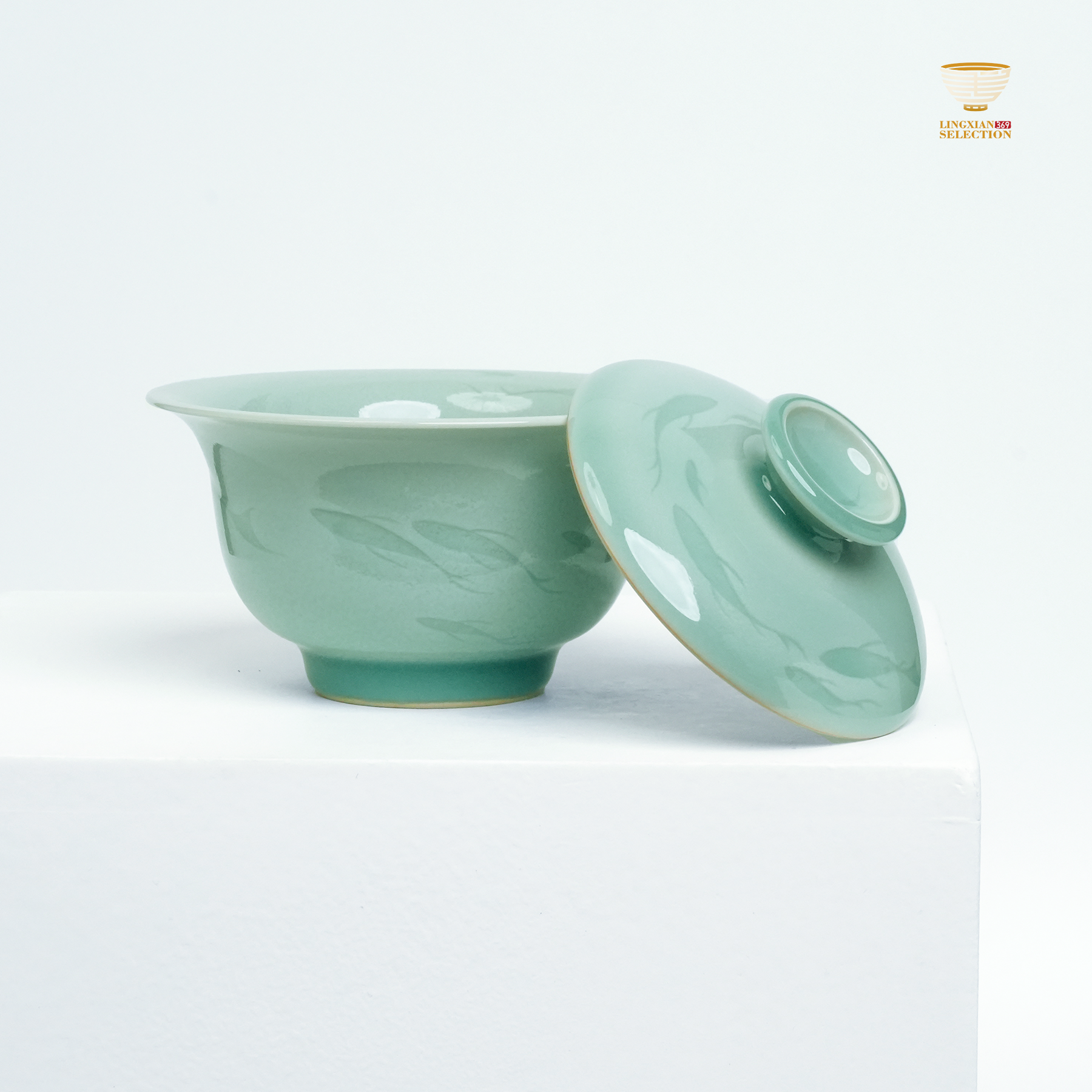 【Longquan Celadon by Liao Xinliang Big Fish & Begonia Gaiwan|A Masterpiece of Craftsmanship & Tea Aesthetic Collection】