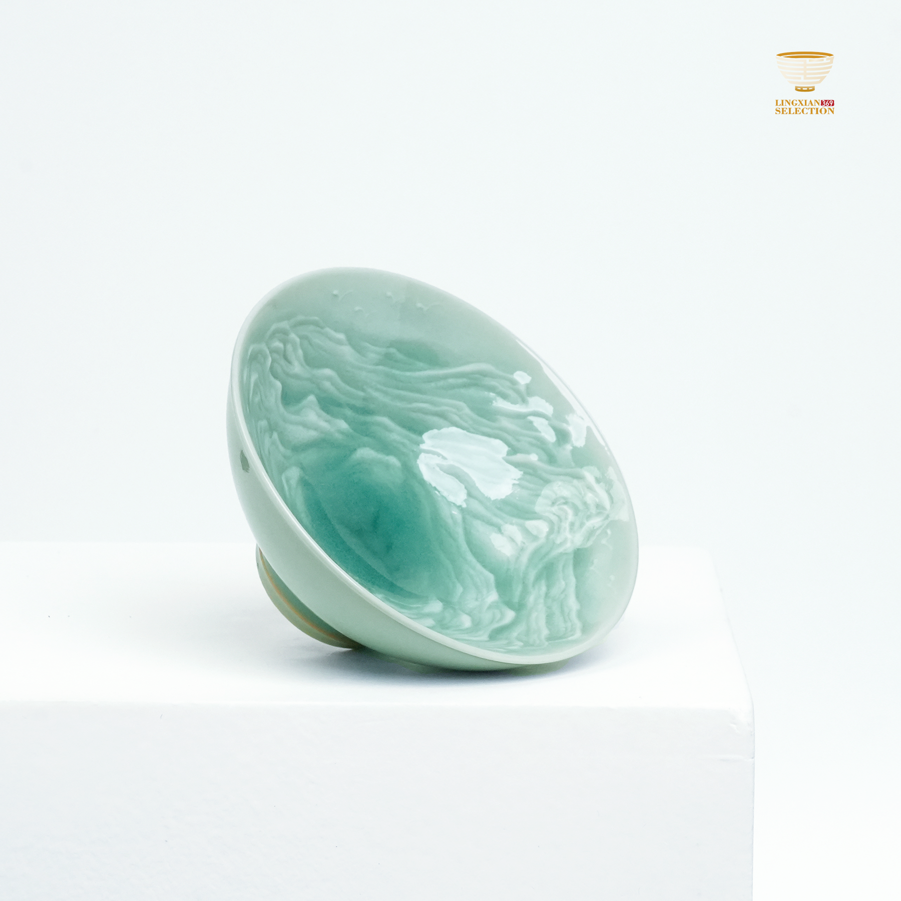 【Longquan Celadon by Liao Xinliang · layers of mountains and rivers Teacup |A Masterpiece of Craftsmanship & Tea Aesthetic Collection】