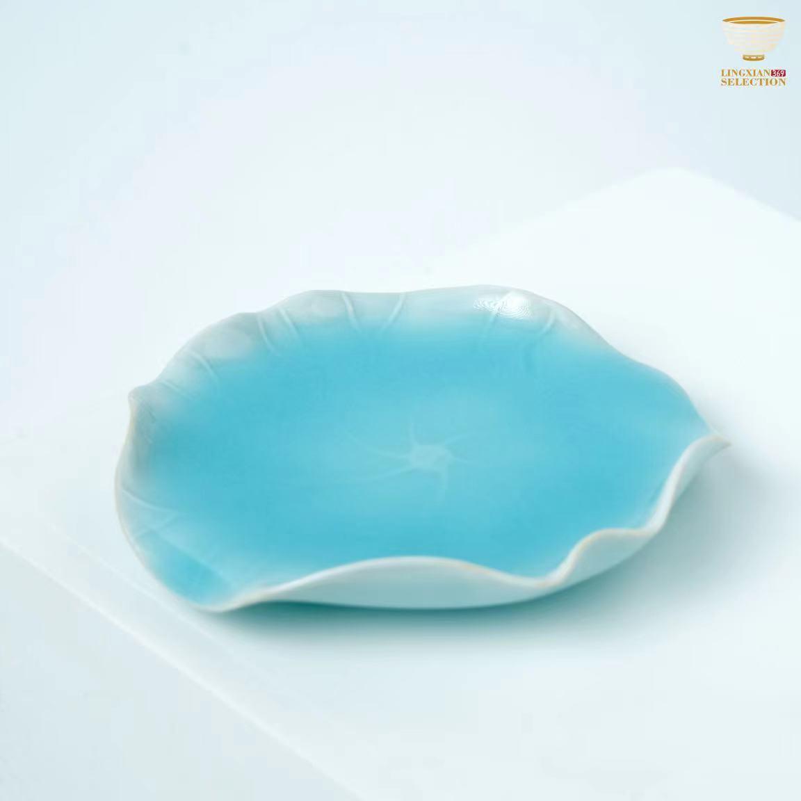 【Jin Hongyang Celadon Lotus Leaf Tea Tray/cup Plate】Handcrafted Celadon Saucer with Crackle Glaze|Elegant Support for Gongfu Teaware