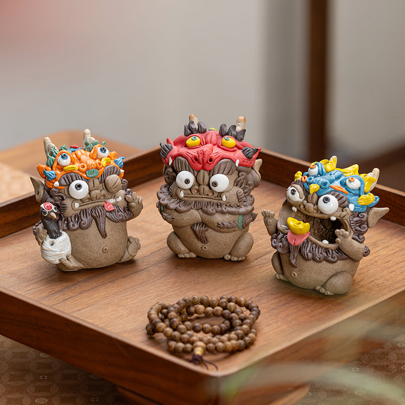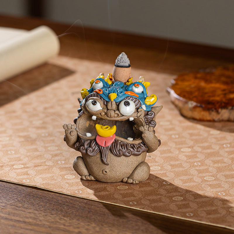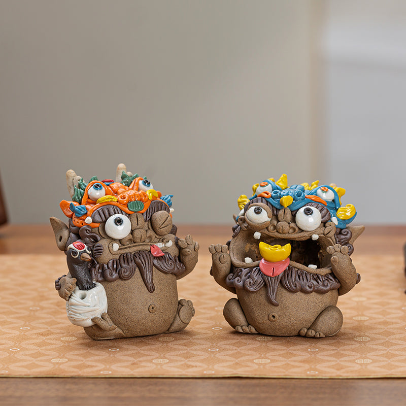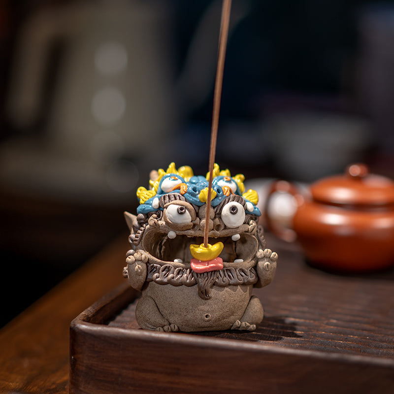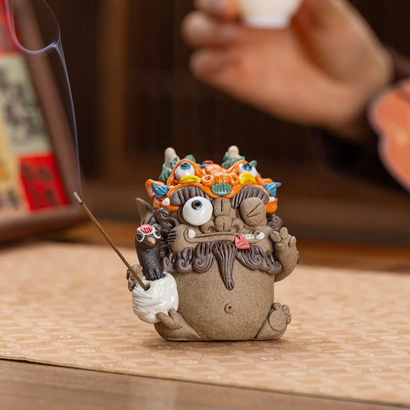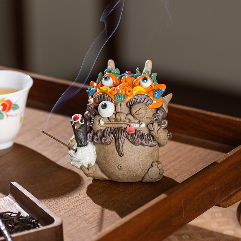 Porcelain Zodiac Dragon Knight Pixiu Figurine – Auspicious Tea Pet & Backflow Incense Burner | Traditional Chinese Gift