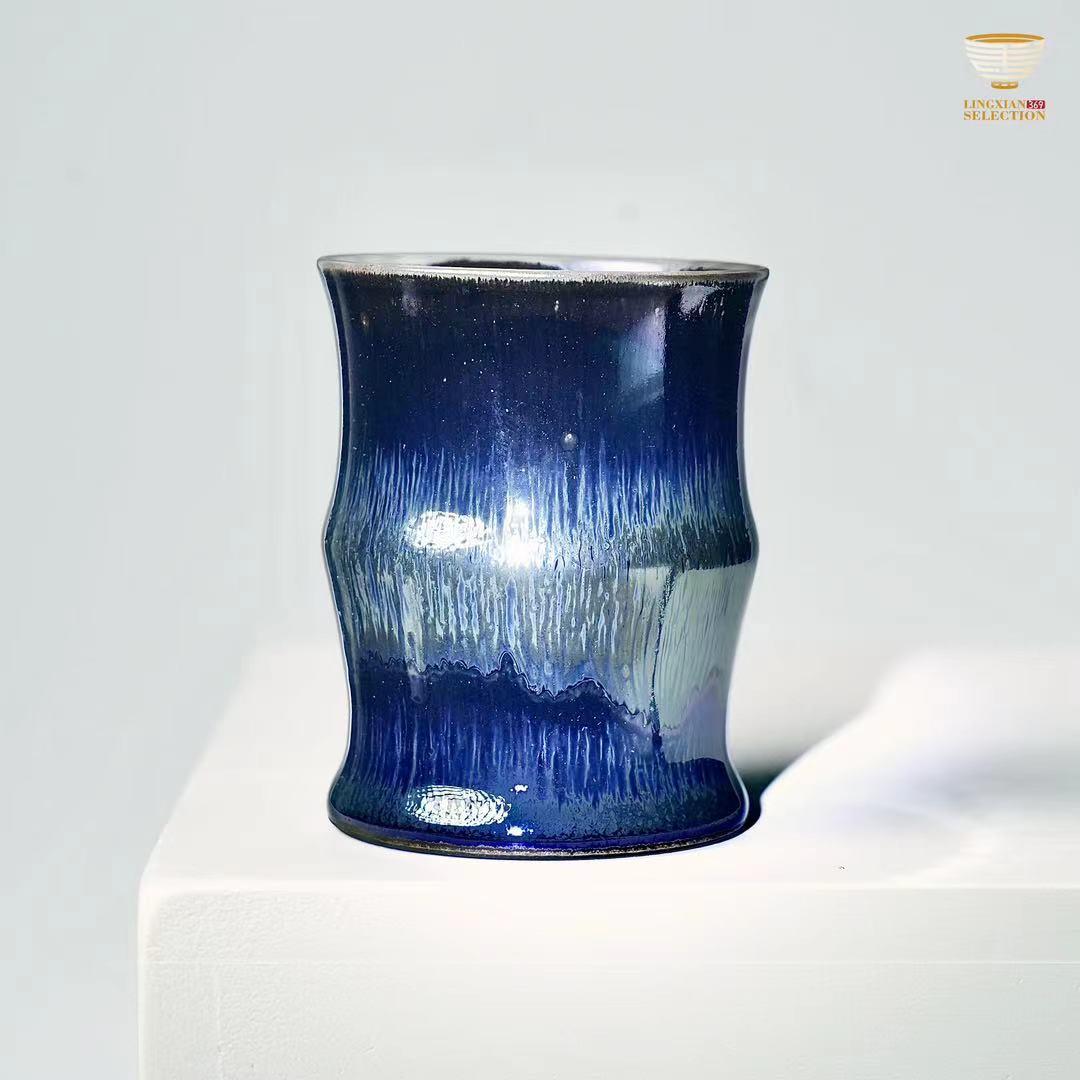 【Tender Sprout Bamboo Shape Teacup from BaiDing Studio Handmade Bamboo-Segment Cup|Iridescent Glaze Ceramic Tumbler|Oriental Aesthetic Drinkware for Tea & Water