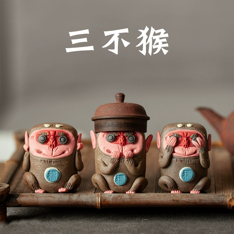 Three Wise Monkeys Lid Holder&Tea Pet – Traditional Chinese Gift