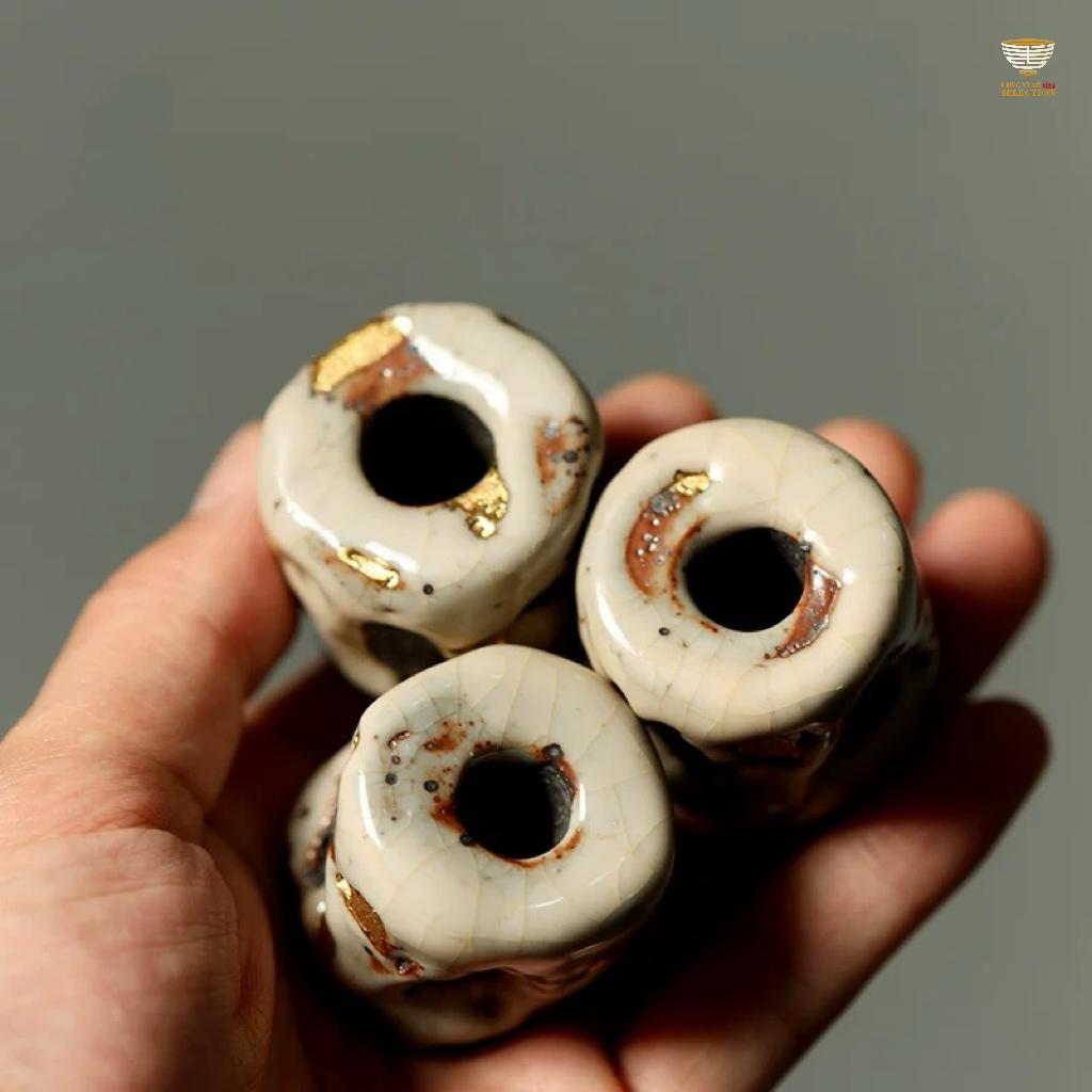 Wood Fire Shino Ware Dunhuang Lid-Holder Aged Rock-Mineral Lid-Holder Ideal for collectors of artisan teaware Hand-carved with exquisite detailing